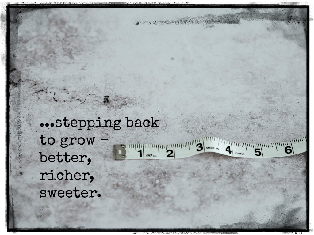 So, what does this mean? Just that growing does not always mean bigger. It may mean simply better or richer or even sweeter. And if that means I have to take a step back or rethink or get a little smaller, so be it.
