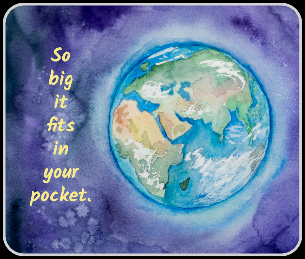 … a world that’s pretty big. And even though it can fit in your pocket, we see so many big numbers and long distances and differences between us. So we need to remind ourselves that everybody is somebody. None of us are just names that fit into survey boxes or check marks on an employment application. None of us are “just” anything. Even if we find ourselves alone or separate, and even if we get things impossibly wrong, we are all part of God’s plan for the world.